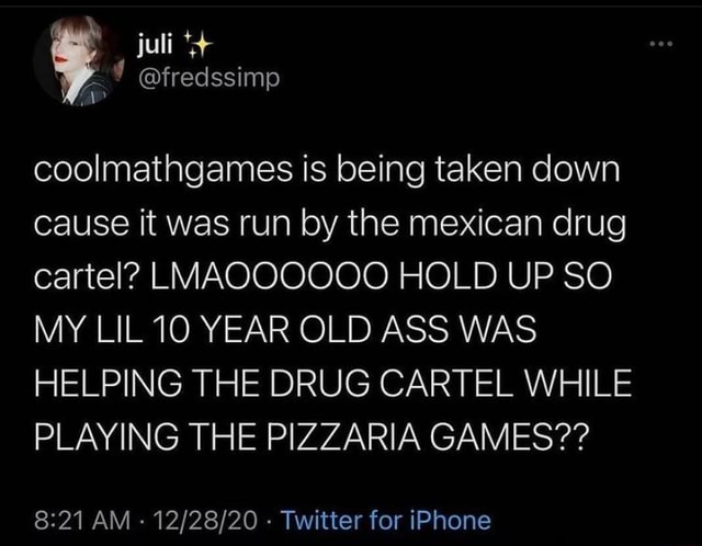 Juli Fredssimp Coolmathgames Is Being Taken Down Cause It Was Run By The Mexican Drug Cartel Lmaqoooooo Hold Up So My Lil 10 Year Old Ass Was Helping The Drug Cartel While